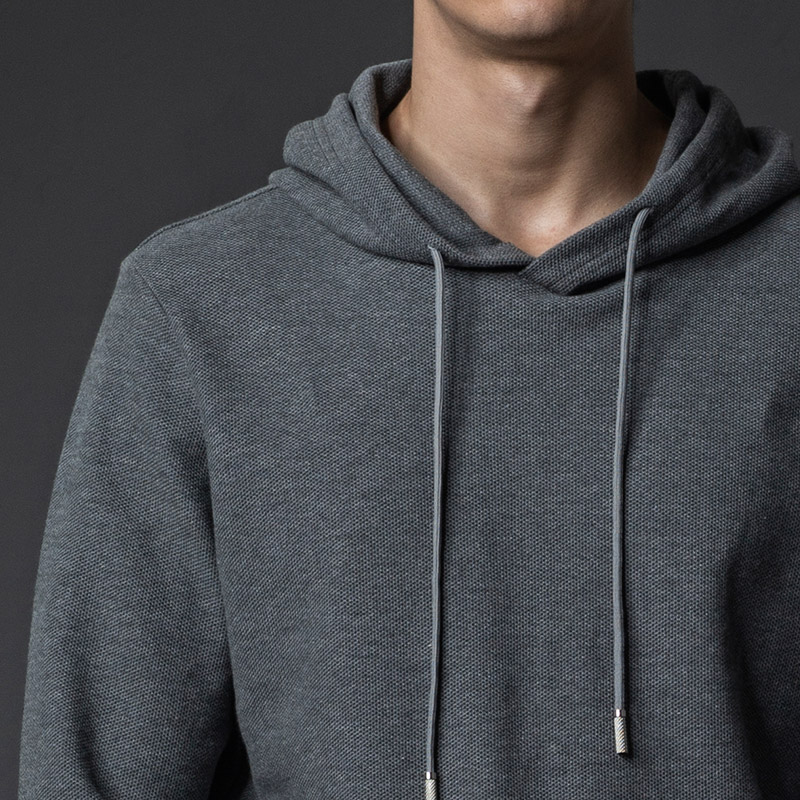 纯棉针织套头连帽商旅长卫衣 石板灰
