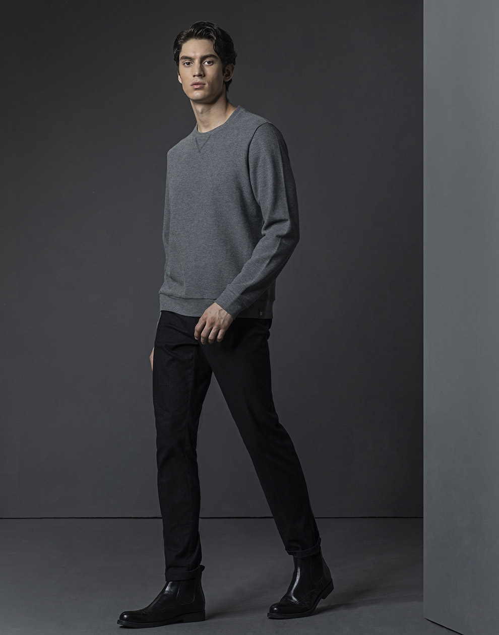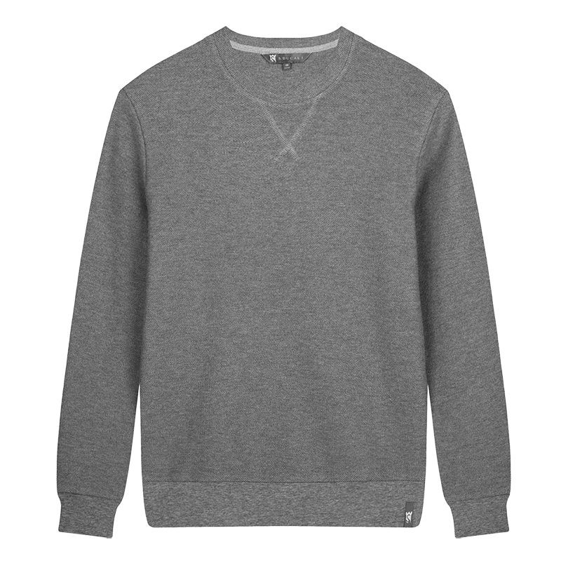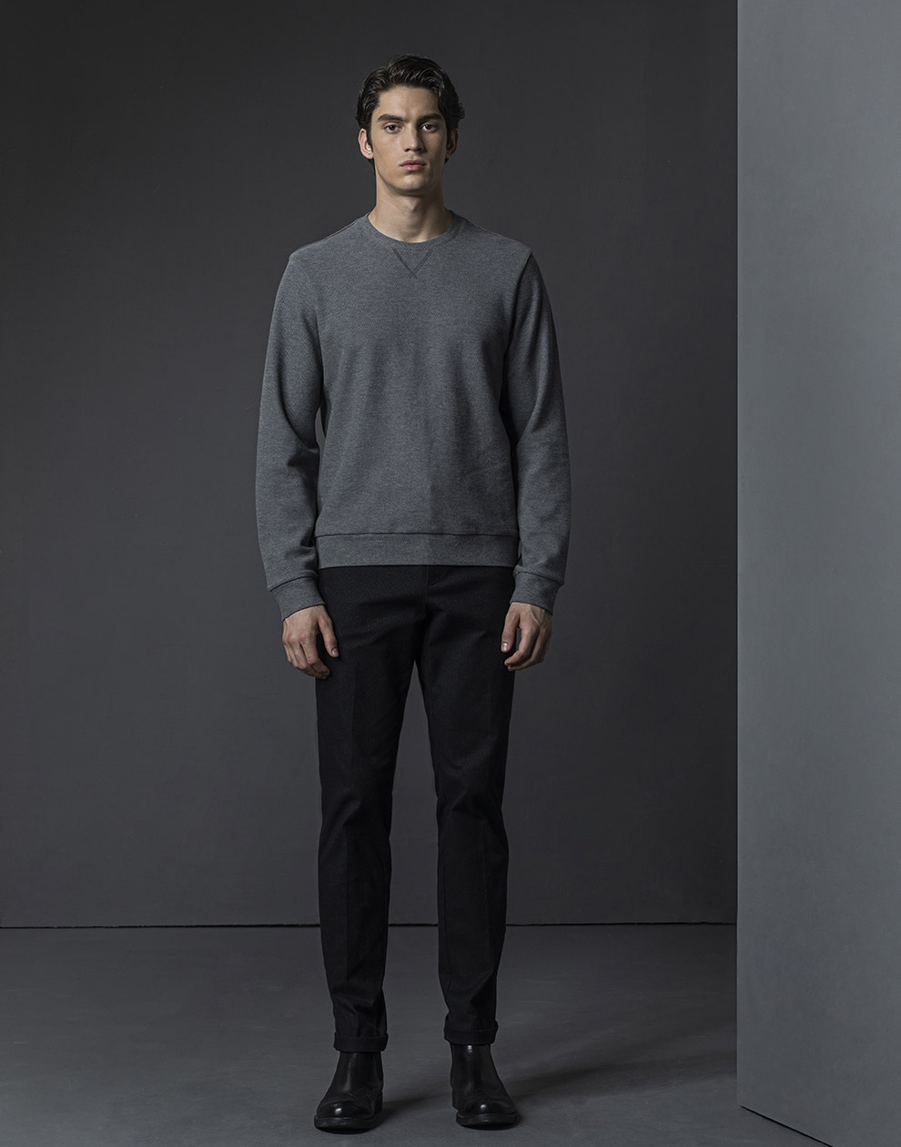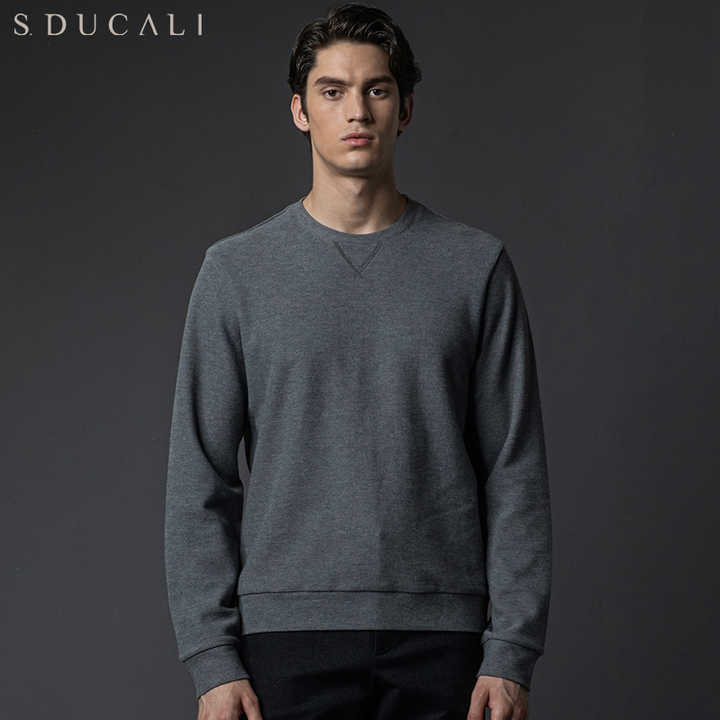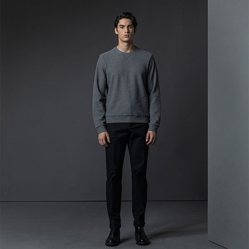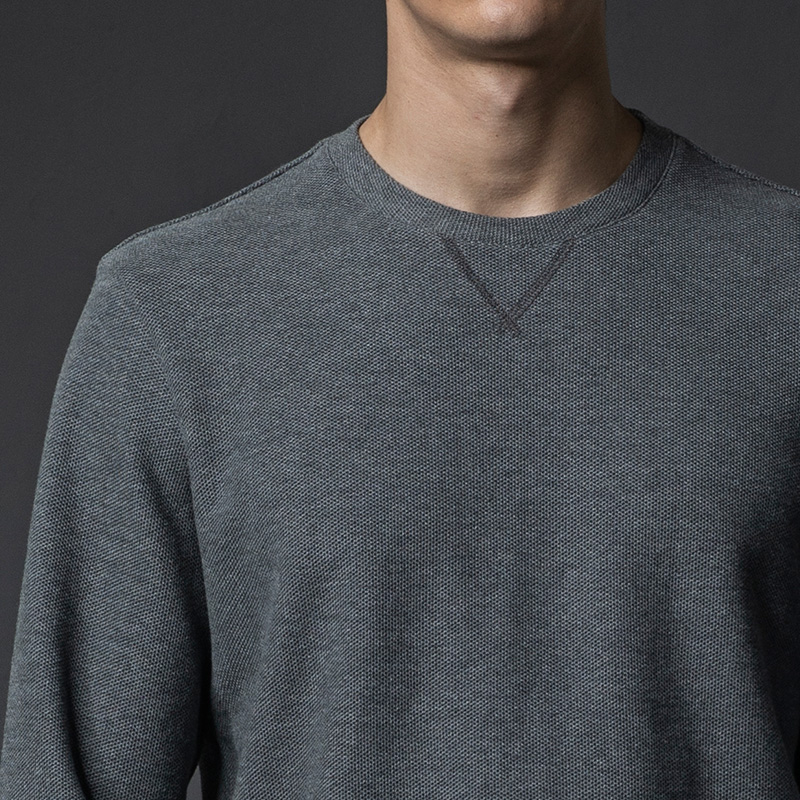 棉质纯色织纹商旅圆领长卫衣 石板灰